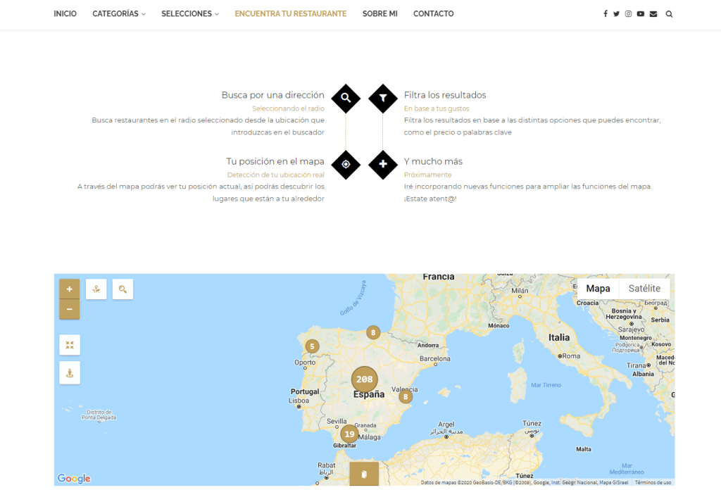 Su web es de las más completas en el nuevo panorama foodier. Nos encontramos con hasta cinco secciones, obviando el «inicio». Todas ellas con una estética más bien minimalista y con muchas fotografías para acceder a las reseñas, lo que la hace muy intuitiva.